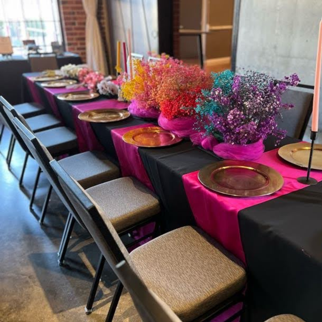 A vibrant, high-energy design brought to life through bold color, dynamic layering, and statement details. This celebration was designed to feel joyful, confident, and full of personality - proving that elevated design can still be fun and expressive.